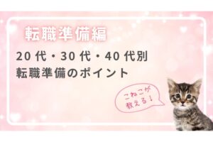 20代・30代・40代の年代別転職戦略を徹底解説!「ポテンシャル」「実績と役割」「経験の蓄積」といった年代ごとの強みを活かし、市場価値を高める具体的な行動プランを、こねこ式でわかりやすく紹介します。失敗しない転職準備を始めましょう。