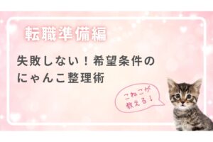 にゃんこ流でわかりやすく!転職活動で迷わないための「希望条件整理術」を紹介。譲れない条件・あったら嬉しい条件の分け方や優先順位の付け方を整理すれば、応募先選びもスムーズに🐾